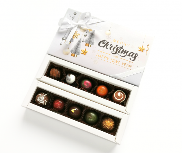 Входит: В набор входят 10 конфет из 100% бельгийского шоколада.
