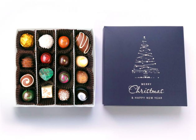 Входит: В набор входят 16 конфеты из 100% бельгийского шоколада: "Кофейный" и "Кокосовый" трюфели, "Малибу", "Марципан с орешком", "Чернослив", "Корица", "Фундук в карамели", "Сердце тропиков", "Ореховый рай", "Медовые", "Вкус Ирландии", "Карамельные орешки", "С Вишенкой", "Чери Леди", "Кофе мартини" и "Шампанское с сусальным золотом".